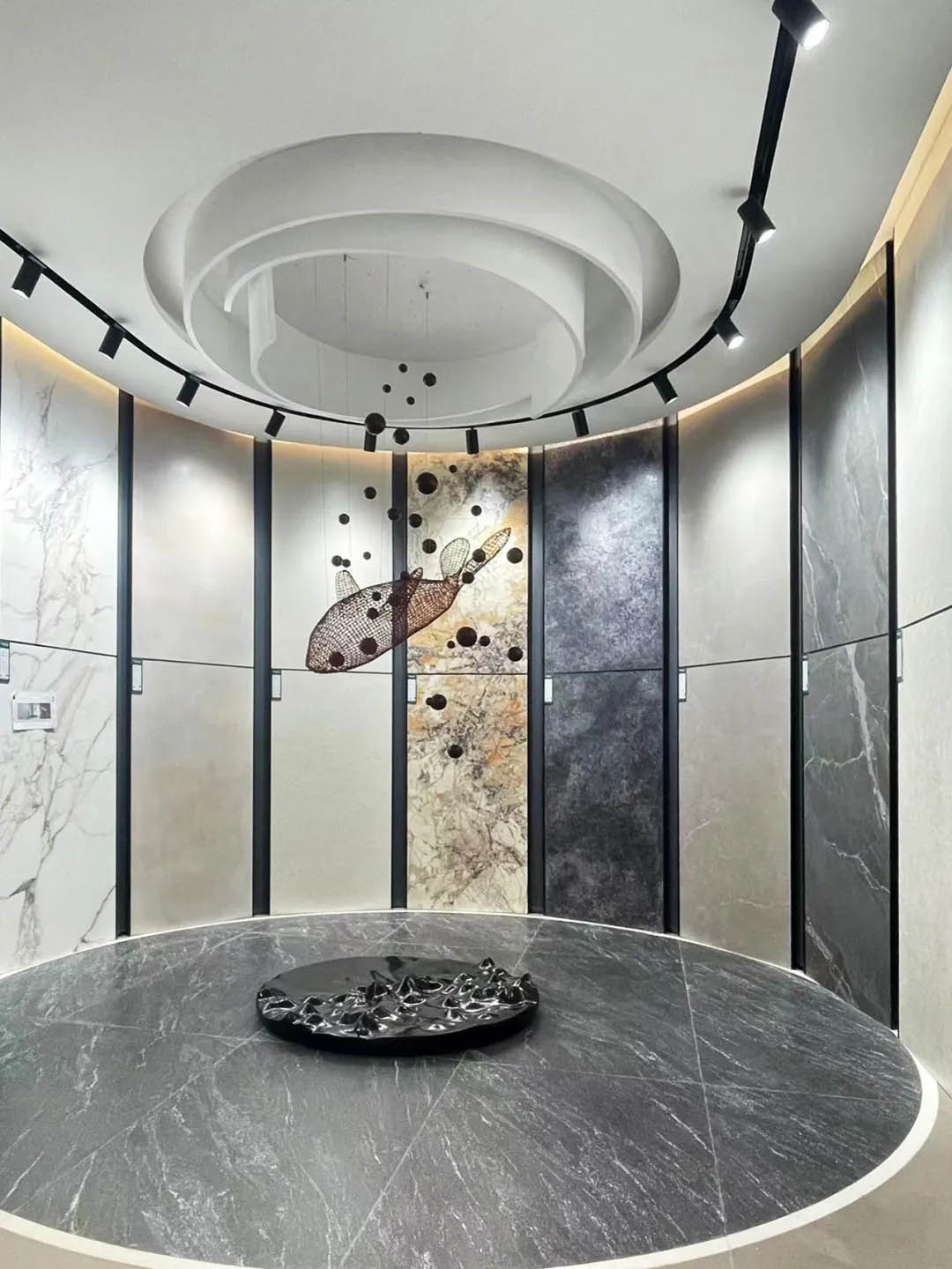 空間中擁有了藝術,便擁有了智慧與靈性。整體空間提煉大理石抽象形態,塑造如臨汪洋的東方哲學意境。鯤鵬元素的藝術裝置,展示鯤鵬游走的痕跡,也是關于未來生活更多可能性的故事。