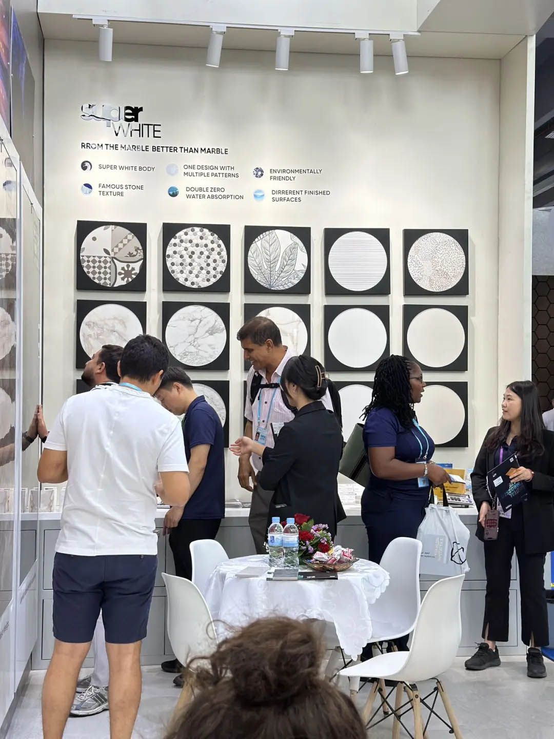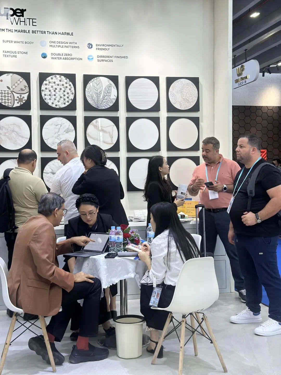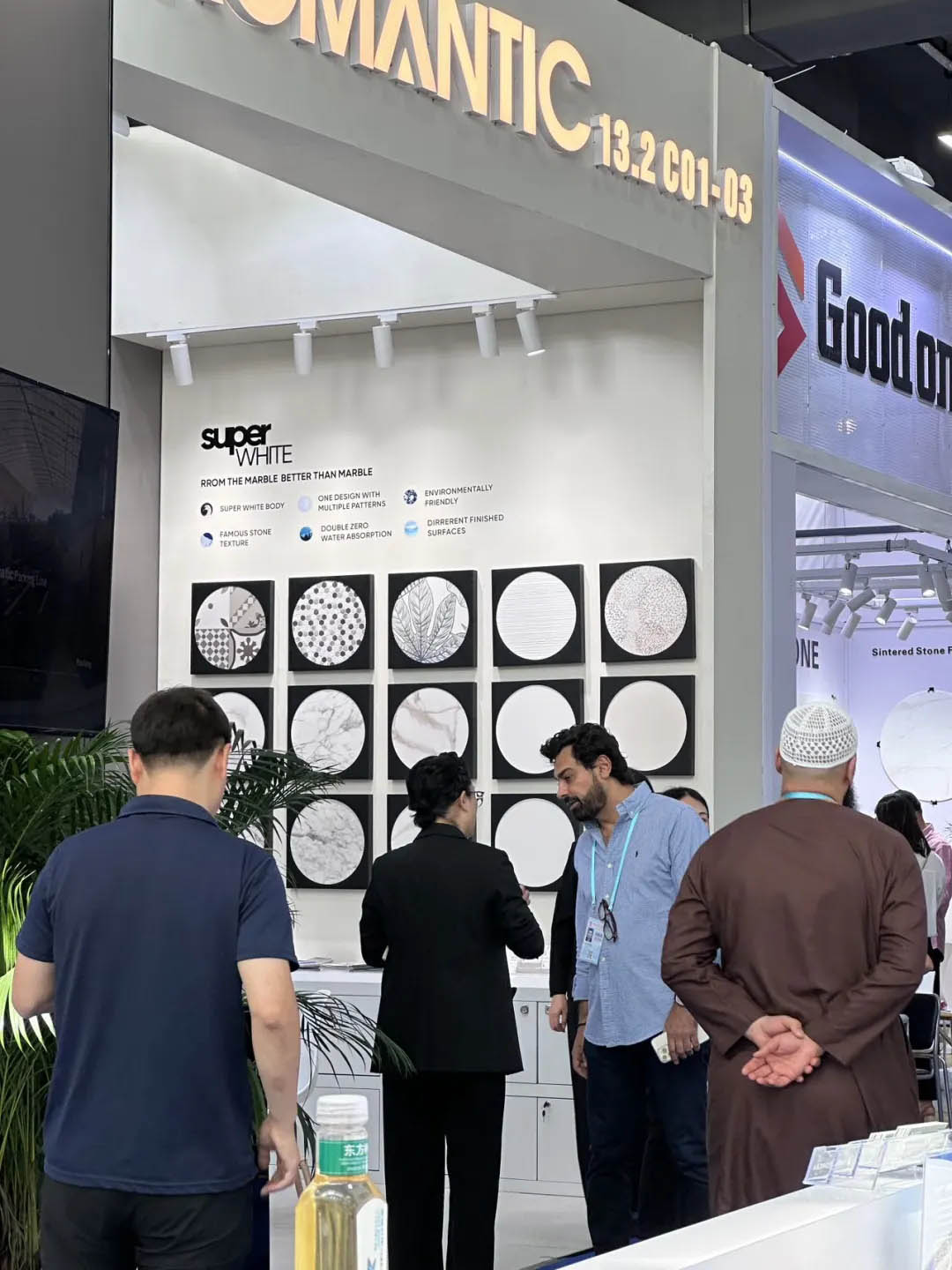 開展首日,羅曼締克瓷磚展位內(nèi)可謂是人潮涌動(dòng),以“全球同步 品質(zhì)同行”的品牌定位、獨(dú)具特色的趨勢產(chǎn)品,吸引全球各地的參展商駐足觀看、洽談,在廣交會上更是攢足眼球。
