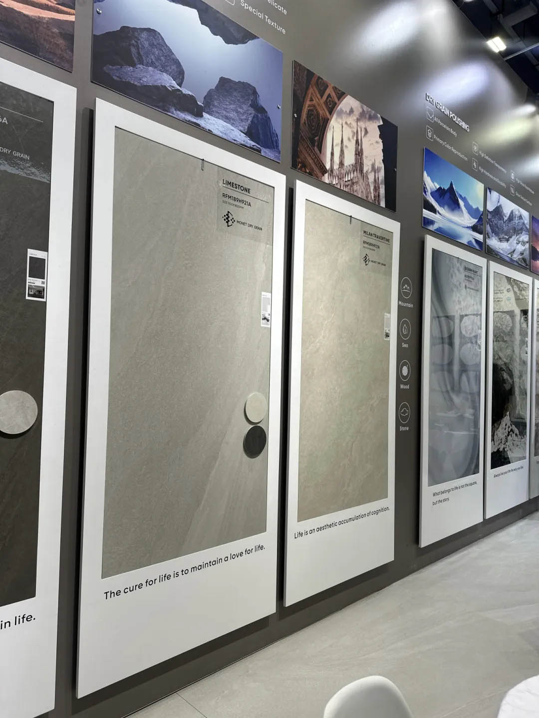 產(chǎn)品設(shè)計(jì)題材依然以木紋磚、洞石系列、大理石、美學(xué)巖板為主流,但更強(qiáng)調(diào)產(chǎn)品工藝的表現(xiàn),花色、規(guī)格和質(zhì)感更加突出,帶來更強(qiáng)的產(chǎn)品表現(xiàn)力,為用戶呈現(xiàn)更高顏值、更高品質(zhì)、更具個(gè)性的美學(xué)瓷磚,塑造更高階的空間美學(xué)。
