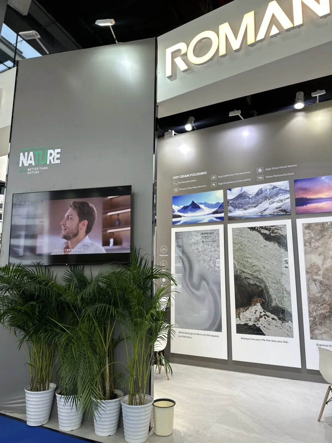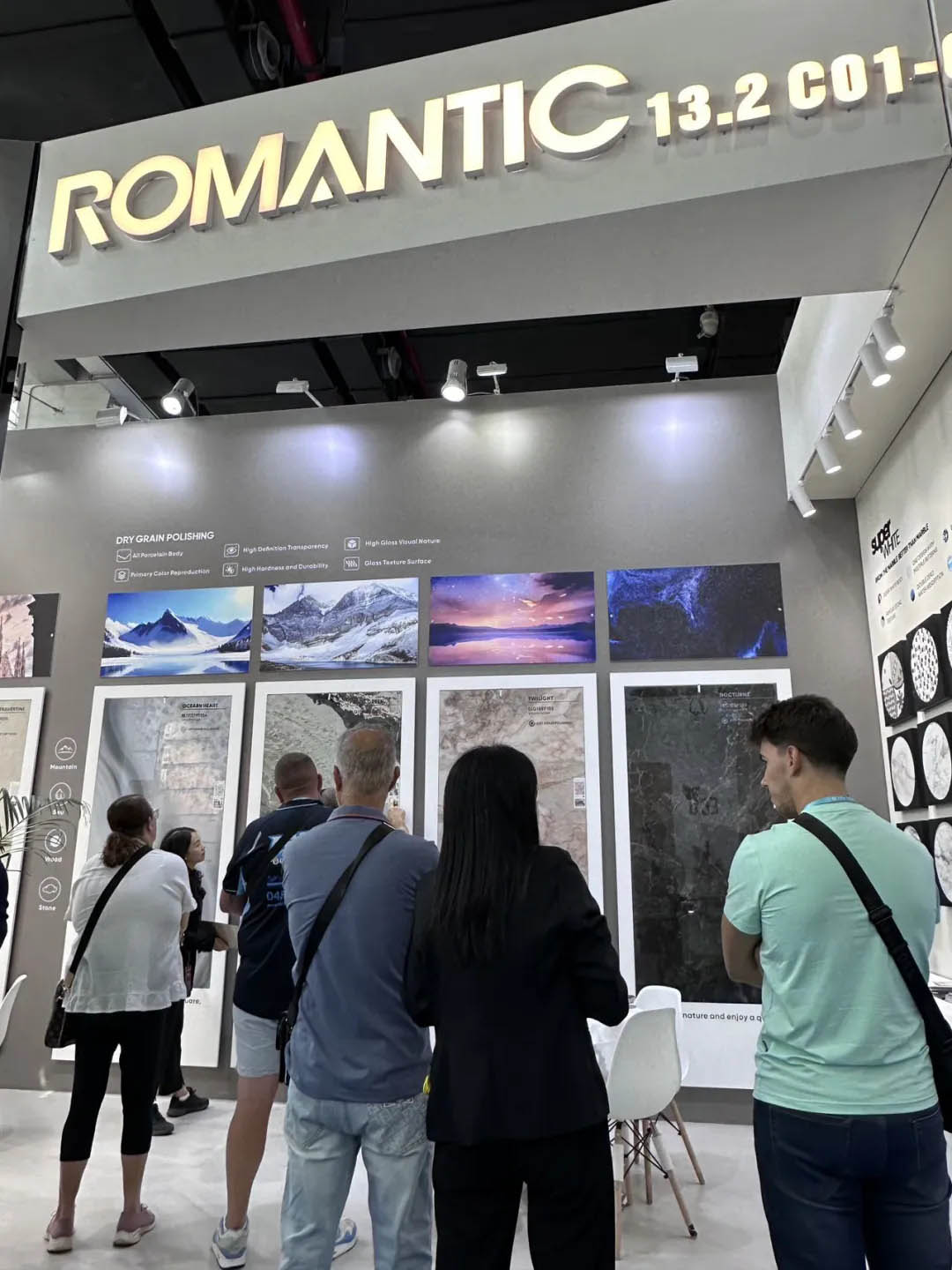 本屆廣交會,羅曼締克攜數(shù)碼模具、時(shí)間長河、莫奈干粒等新系列產(chǎn)品,以新工藝、新技術(shù)、新裝備的開發(fā)應(yīng)用,再次向全世界展現(xiàn)了羅曼締克的產(chǎn)品美學(xué)價(jià)值和設(shè)計(jì)創(chuàng)新力。其中時(shí)間長河、莫奈干粒、動(dòng)態(tài)數(shù)碼、木紋磚等產(chǎn)品憑借c-stone復(fù)刻釉、超細(xì)干粒拋、數(shù)碼模具,高白底坯等全新工藝、頂級性能頻頻出圈,備受海內(nèi)外客商青睞。