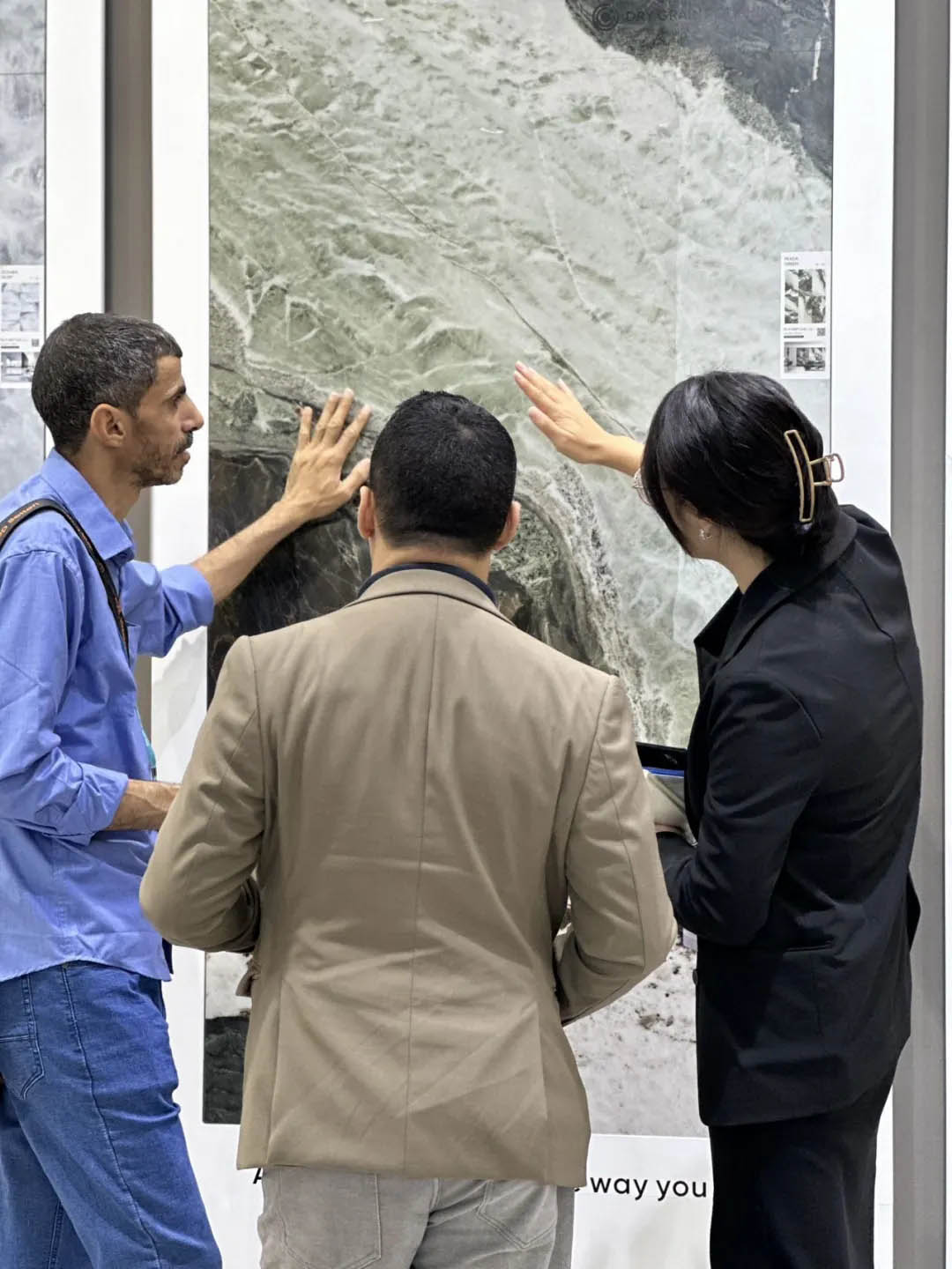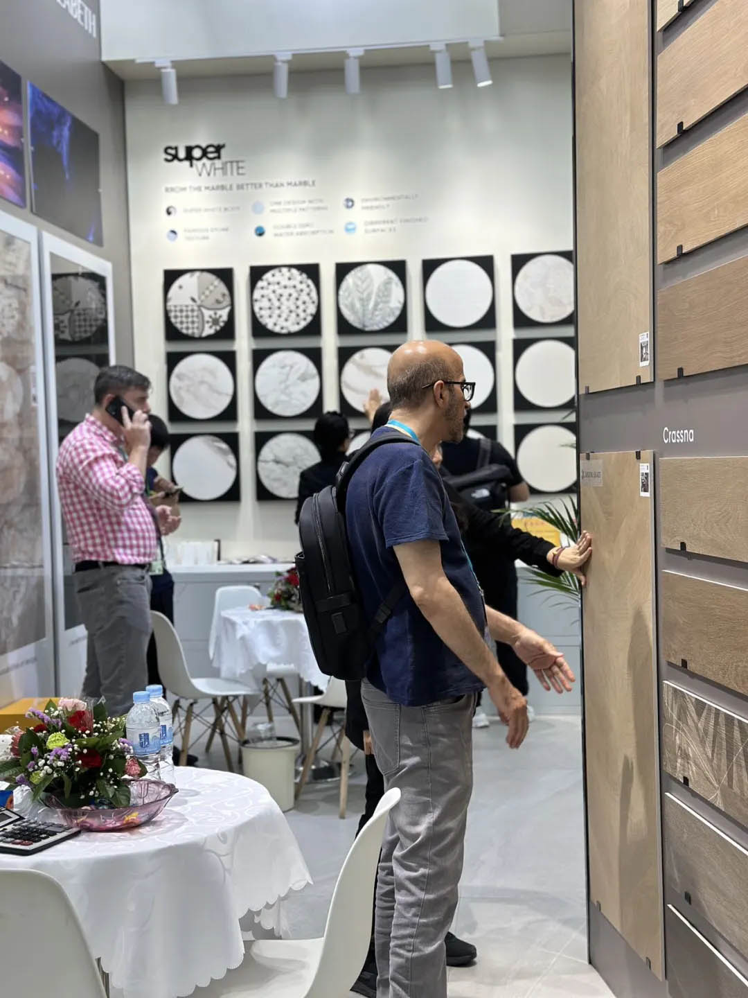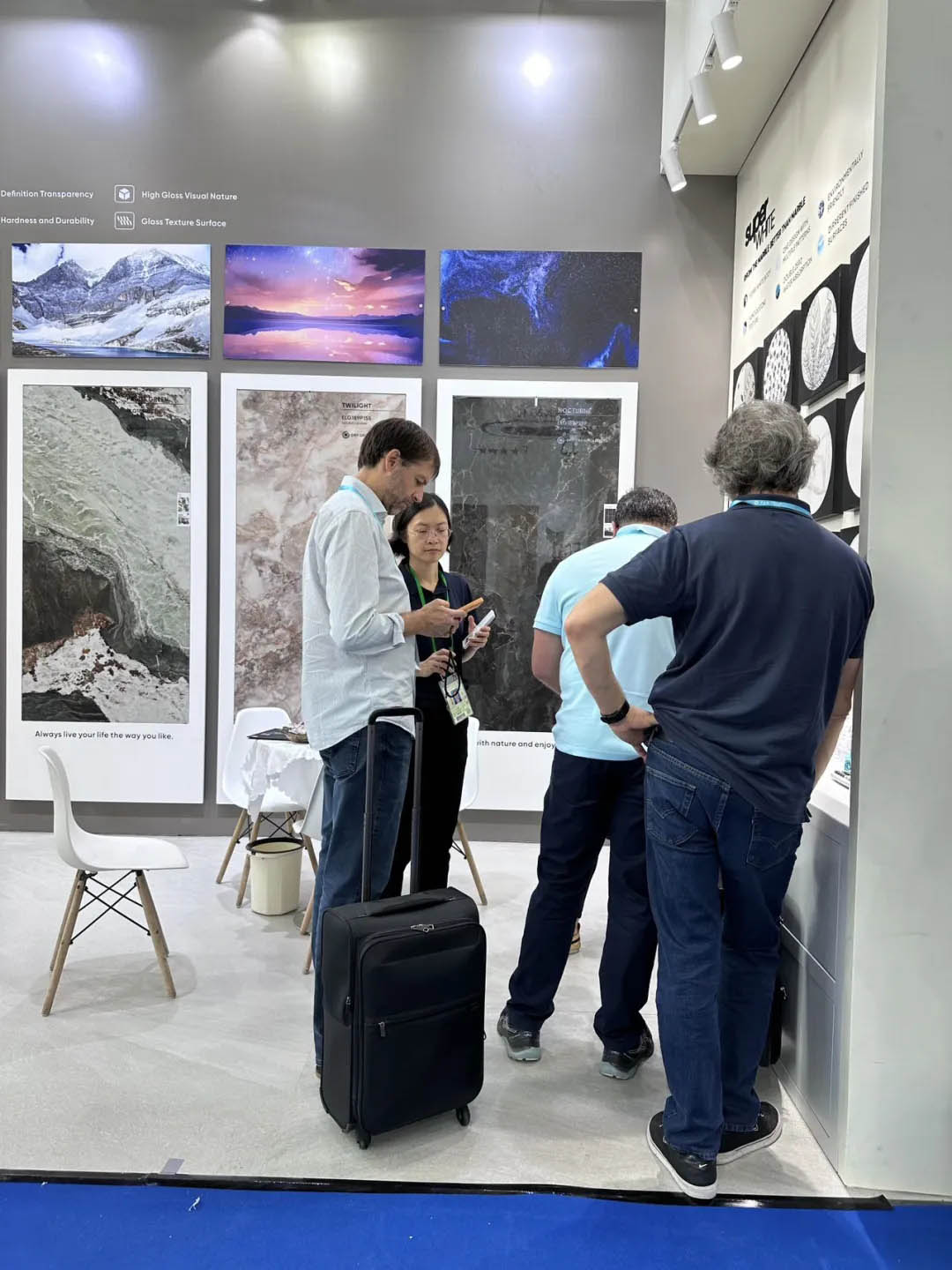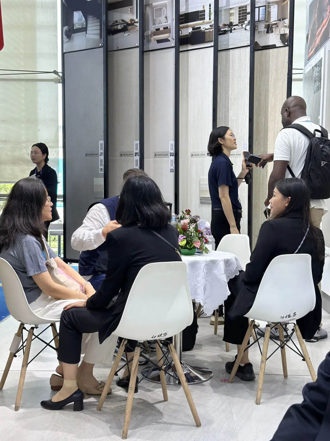 眾多商客通過看、聽、摸等全方位體驗(yàn)羅曼締克產(chǎn)品的魅力,現(xiàn)場工作人員熱情地向客商們介紹產(chǎn)品情況,并耐心解答觀眾對產(chǎn)品的疑惑,為未來合作奠定良好契機(jī)。